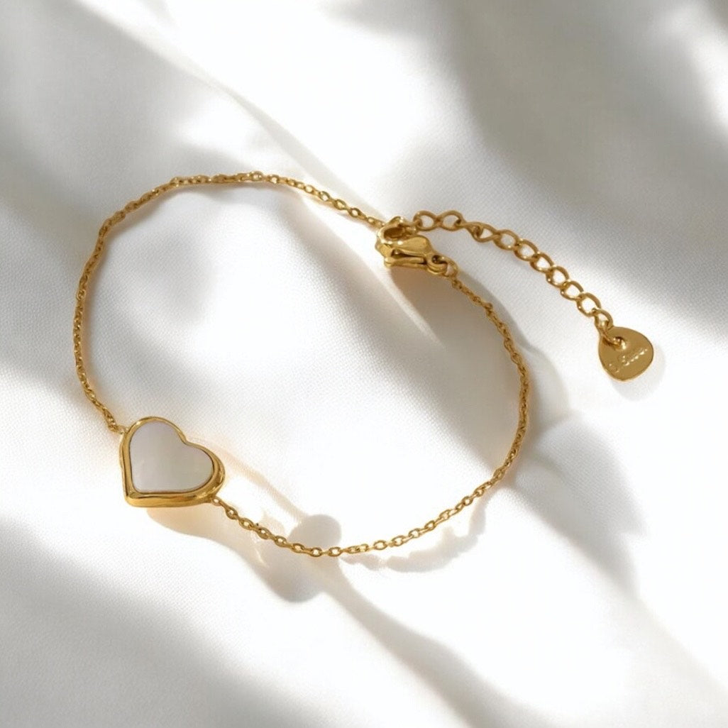 Bracelet Chaîne Fine Dorée Cœur Nacre.