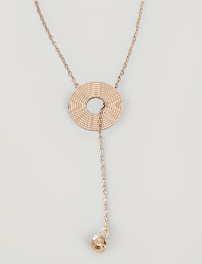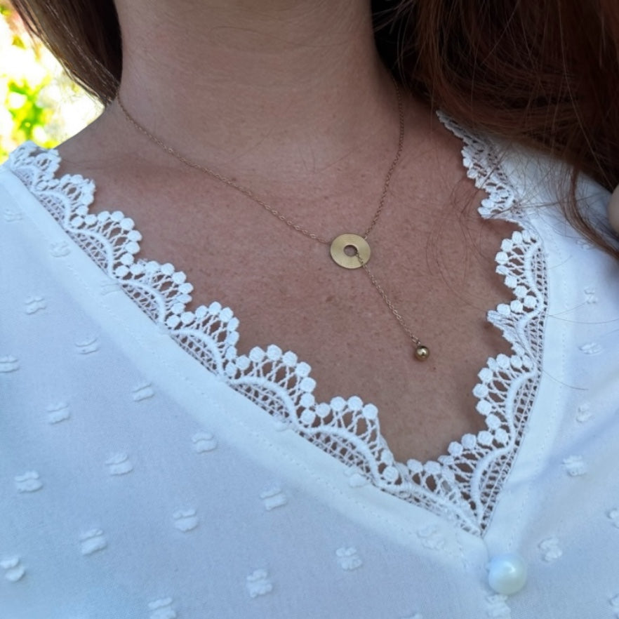 Collier chaîne dorée avec disque et boule en Y