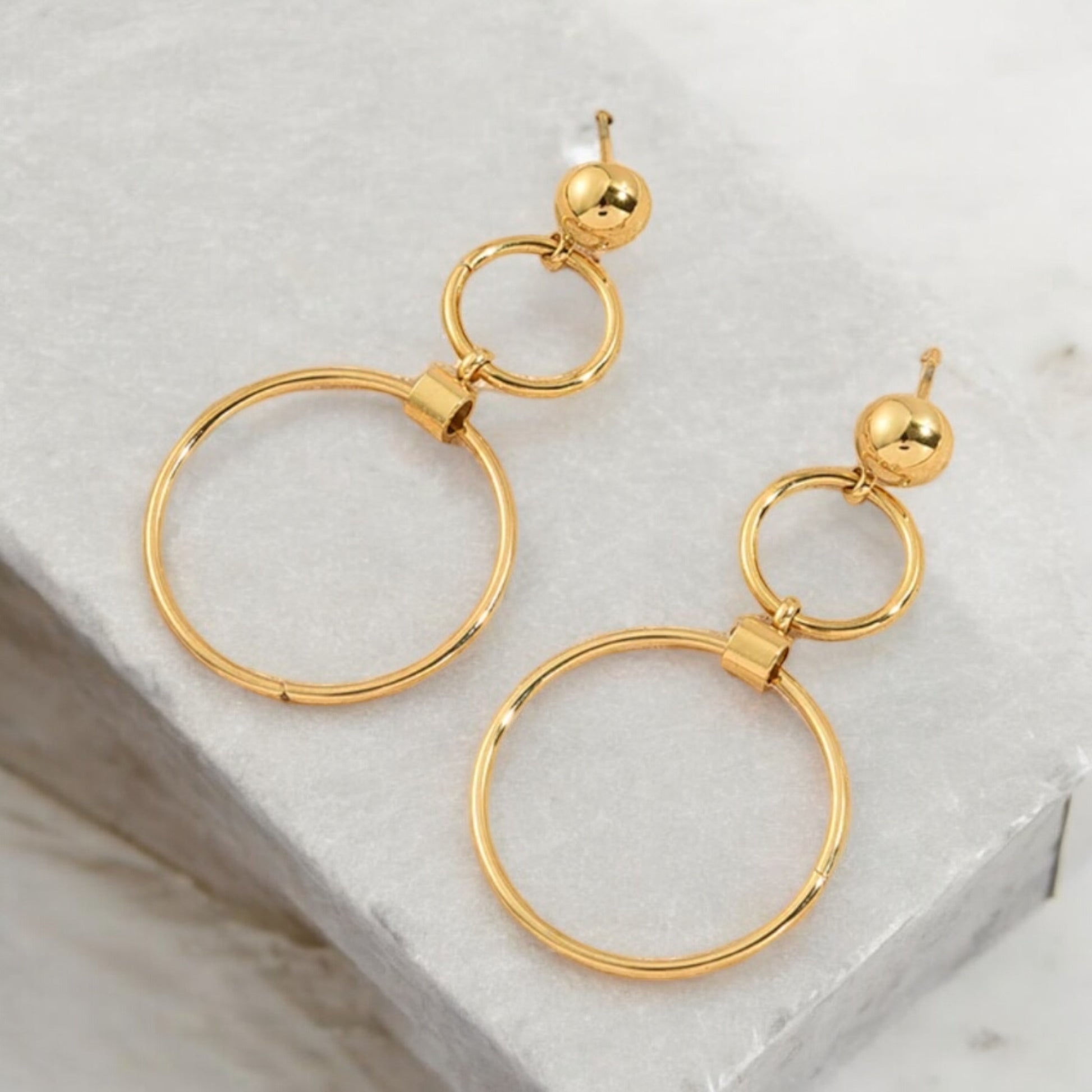Boucles d'Oreilles Boules Et Pendantes Double Cercles