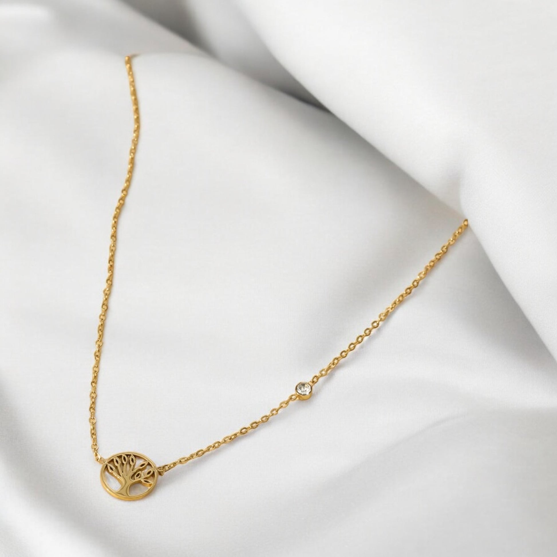 Collier Doré Avec Pendentif Arbre de Vie Et Strass