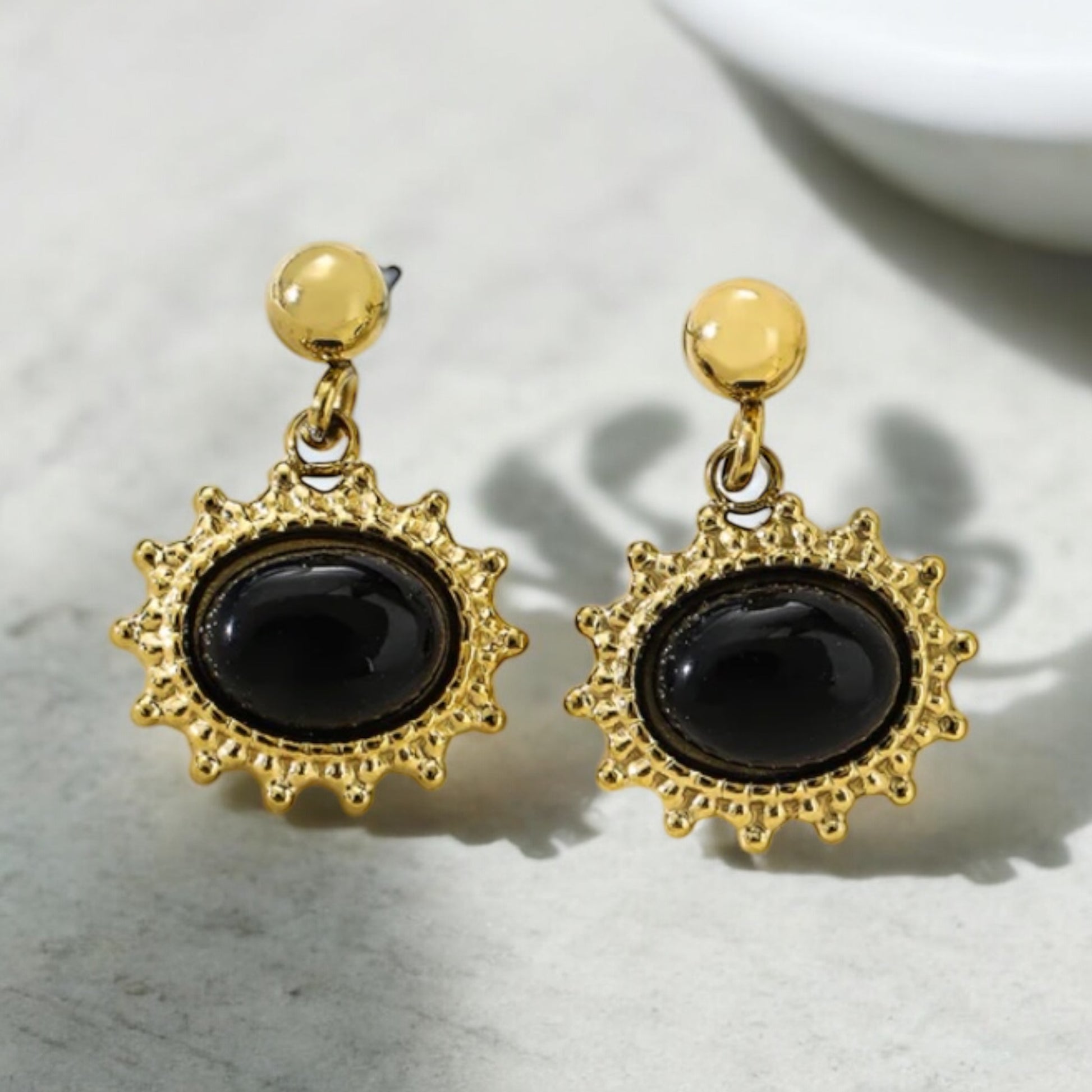 Boucles d'Oreilles Dorées Pendantes Soleil Onyx