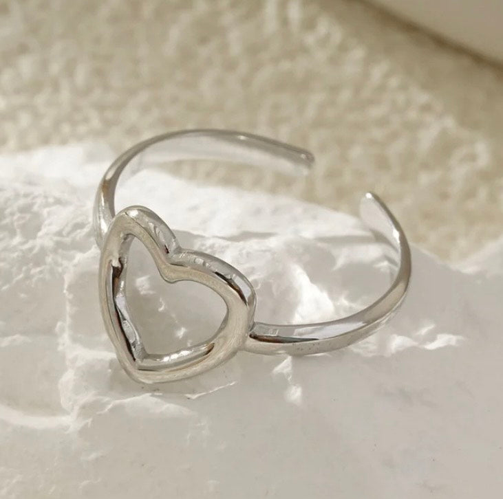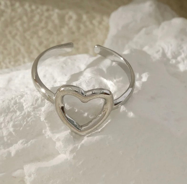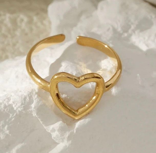 Bague cœur argentée ou dorée en acier inoxydable
