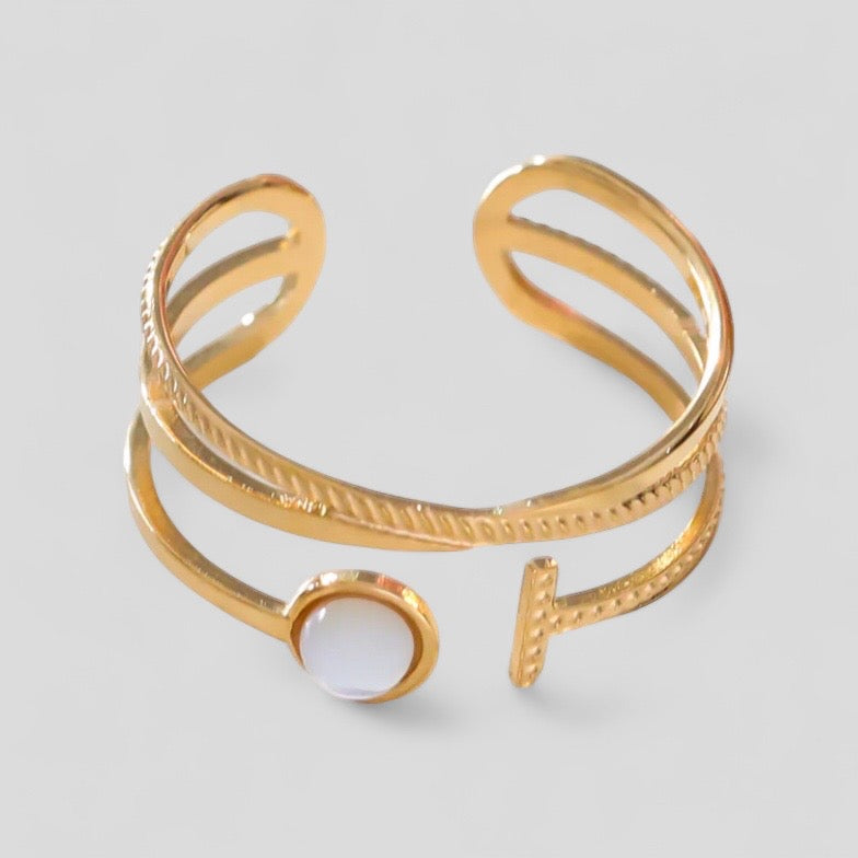 Bague dorée croisé avec pierre blanche